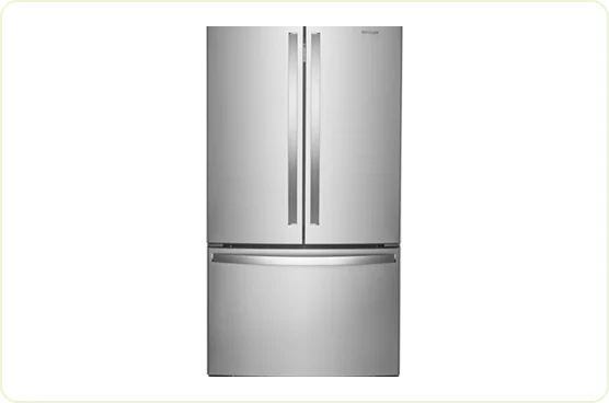 Features: French door, frameless glass shelves (Refrigerator style and size may change depending on ADU size)